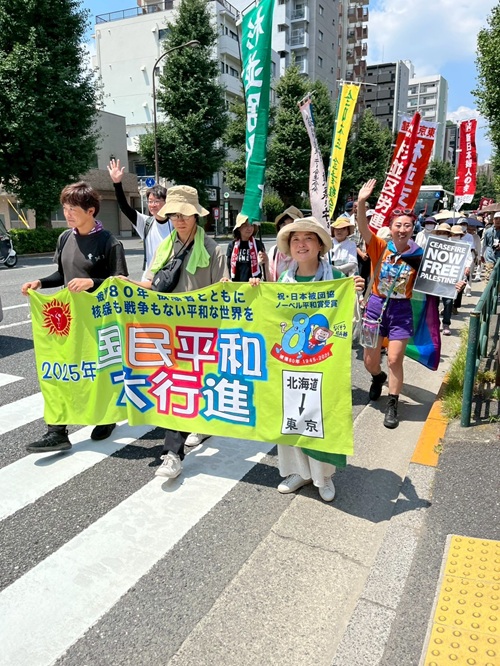 7月に行われた「国民平和大行進」に参加し、市民とともに核兵器廃絶をアピール。平和行進には岸本区長からも「皆さんの歩みは、これまで以上に大きな意味がある」とのメッセージが寄せられました。