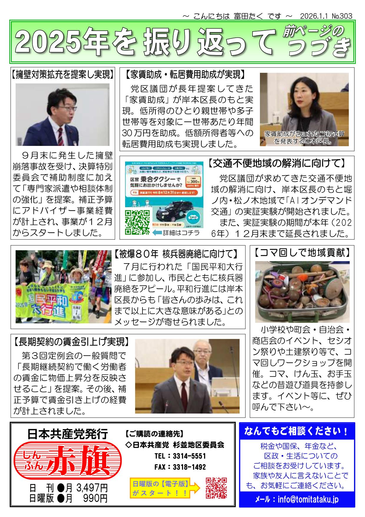 今年6月には杉並区長選挙と区議補欠選挙が行われますが、岸本区政のもとで始まった新たな杉並の変化を、さらに前進させることができるかどうかが問われています。